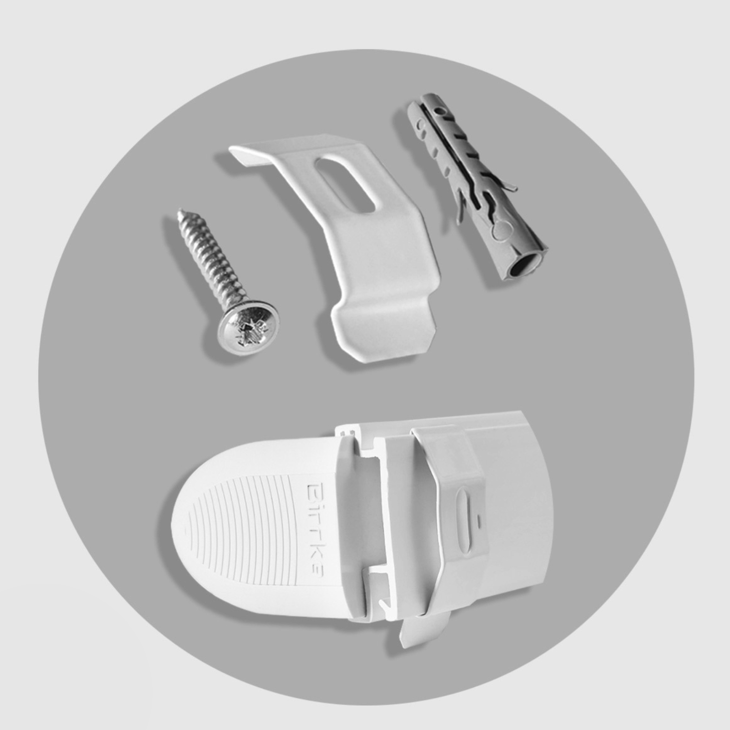 • Die Halterung wird per Klemmmechanismus befestigt – rückstandslos entfernbar.
